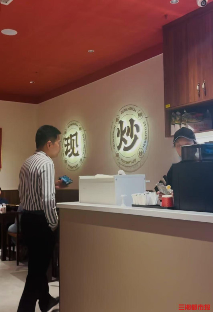 记者在上述德天顺现场看到,收银前台后面就是透明厨房,可以看到里面有多个厨师正在炒制码子(盖在饭上的菜),间隙还有一位厨师正将炒好的一份菜全部从锅中倒在米饭上。“我们都是现炒的,不是预制菜,外卖有的是多份一起炒,堂食的多为一份一份炒。”店员说。